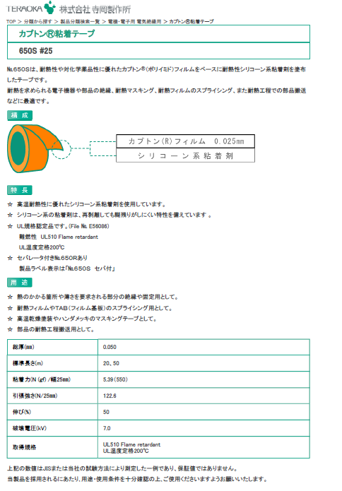 颜色:琥珀色。主要成份:聚酰亚胺kapton薄膜、硅胶。 耐温:180℃(短时间内耐温可达300~400℃)。 耐压:7.5kV。 用途:高频变压器与特殊变压器的层间绝缘、线路板过波峰焊锡时起遮蔽保护作用(尤其金手指)