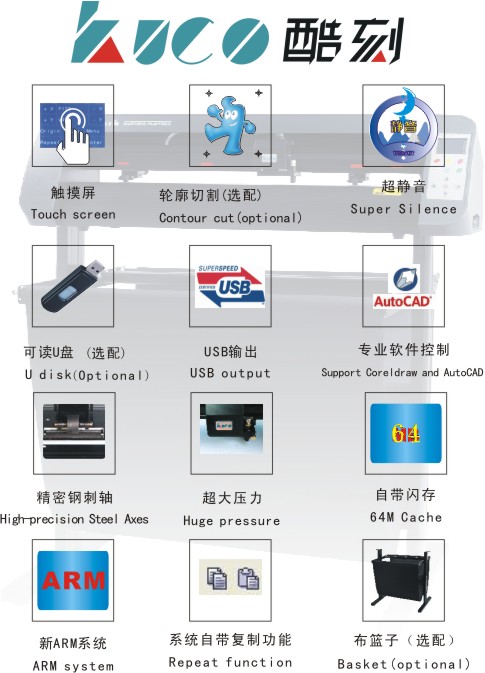 酷刻刻字机又称酷刻割字机、酷刻刻绘机(介字机/界字机), 速度快,功率大,噪声低,其性能可媲美日本图王和罗兰刻字机.