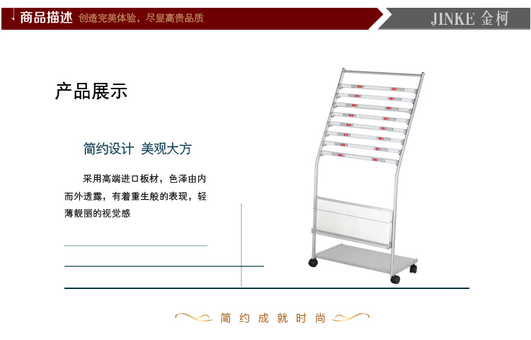 金柯拥有雄厚的技术力量,集产品设计研制销售及服务为一体。专业制造酒店用品、街道路牌、广告框架、指示牌等系列产品,可根据客户的需求设计样品或来样定做。公司一直孜孜追求产品的细节与完美,为广大广告商家、宾馆酒店、银行及政府采购部门提供优质的服务,连续三届获得“消费者信得过单位”并获得广泛好评.