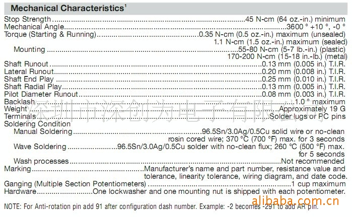 6187R10K L1.0 美国BI 产地:墨西哥 单圈电位器 原装正品
