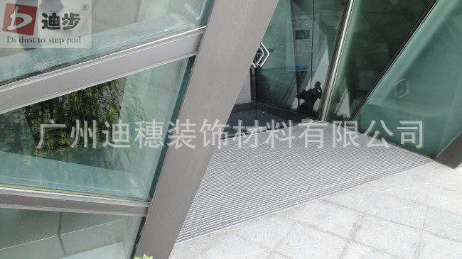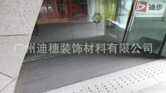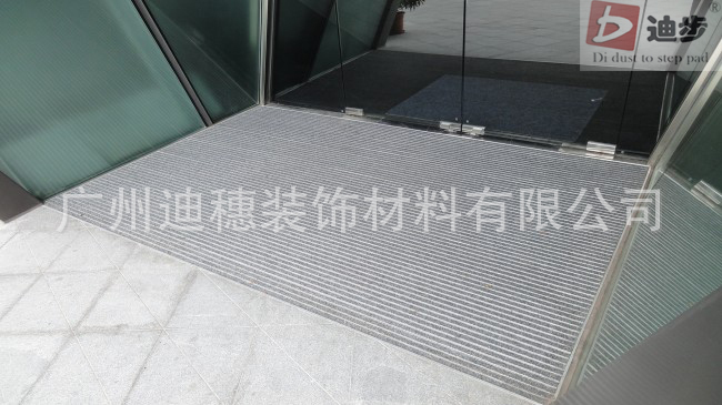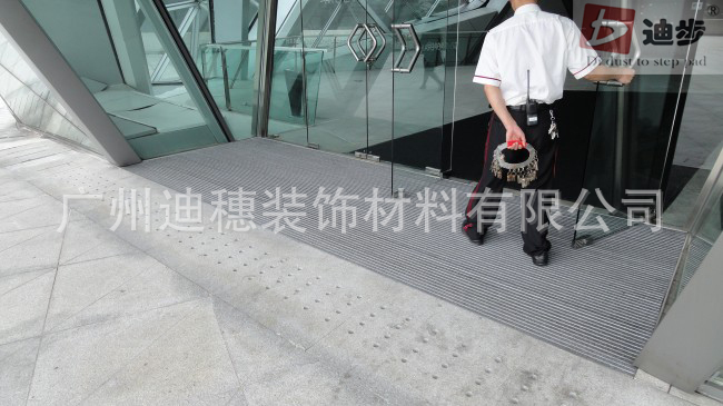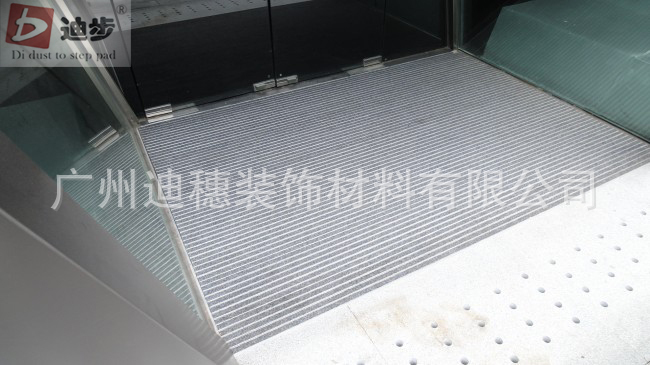 广州捷步除尘地垫有限公司防尘垫铝合金地垫防尘地毯,防尘地垫,银行铝合金地垫,迪步产品简介:(手机:13538879121 02034707818)迪步铝合金除尘地垫框架用于德国氧化铝900系统制成,厚度为1.2mm-1.8mm-3mm ,铝合金框架用包塑不锈钢丝绳连接,配件用304不锈钢锁扣.承受力能在标准滚动之下可达到每平方1500kg-2000kg-3000kg不变形.面料采用德国纯尼龙刮尘面毯,,高约10 mm ,能阻燃,抗静电,没辐射,毯面耐磨可阻止泥土沙尘重复带入室内,从而保证了室内环境清洁和减少大理石的磨损率。产品色彩多元化可任意设计定做. 迪步除尘地垫研发: 迪步专利产品 仿者必究 专利号:ZL201020534003.0迪步除尘地垫清洗保养:1:清洗铝镁合金地垫时,建议每天使用吸尘器及时清洁毯面,使其能保持外观清洁及 除污功能; 2:遇有顽固油渍、污渍,可使用温和清洁剂及毛刷擦拭即可;3:建议每周用中性清洗剂配合地毯抽洗机清洁毯面深层污垢; 4:EVC或橡胶材料清洗时,只需用水冲洗即可;5:各部件组装简便,可卷铺,维护保养方便;6:装饰性好,面层可选,可组成各种形状;7:地毯和橡胶如有磨损可单独更换; 彰迪步除尘地垫性能:1、迪步地垫易清洗,有良好的防滑、除尘、阻燃、抗老化、耐高温等优势 2、迪步地垫是一个理想的排水式、具有防滑功能的安全地垫;3、迪步地垫主要由单纤维与合成纤维高强度扭曲而制成,产品的纤维经过碳化处理,具有在刮沙、藏污和吸湿方面的 超 强优势。4、迪步地垫由单片组成,可根据要求任意安放、安装地垫,产品具有良好的耐光性和耐洗性。底部采用PVC或橡胶材料,可以紧贴地面,不易滑动。5、迪步地垫具有良好的除尘防滑功能,多重材料的组合搭配能延长地垫的寿命,又能更好的起到双重除尘效果,产品色彩多样性及设计做的灵活性决定了产品的装饰性能,也避免了沙土杂质与地面之间的摩擦,保护了地面石材的表面光滑度,毯面和橡胶损坏可以单独更换,从而降低了维修费用迪步铝合金除尘地垫范围:欢迎业主设计师来洽谈地垫/铝合金地垫/门厅入口地垫/除尘垫/铝合金除尘垫/门厅除尘垫/除尘地垫/铝合金除尘地垫/门厅除尘地垫/防尘垫/铝合金防尘垫/门厅防尘垫/地毡/铝合金地毡/门厅地毡/除尘地毯/铝合金除尘地毯/门厅除尘地毯/除泥垫/铝合金除泥垫/门厅除泥垫/刮泥垫/铝合金刮泥垫/门厅刮泥垫/除泥地垫/刮泥地垫/镶嵌入式地垫/蹭脚地垫/铝合金除泥地垫/吸水地垫/铝镁合金地架/井位地垫/比利时地垫/进口地垫/安全地垫/防滑地垫/橡胶地垫/宾馆入口地垫/酒店入口地垫/大堂入口地垫/旋转门入口地垫/自动门入口地垫/汽车展厅入口地垫/写字楼入口地垫/商务楼地垫/会所入口地垫/银行入口地垫/医院入口地垫/商场入口地垫/机场入口地垫/办公楼入口地垫/高尔夫球场地垫/吸水地垫/防污地垫/门厅入口除尘系统/大堂入口地垫