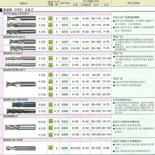 | 6212 | 超钴钢长刃端铣刀 (4刃) | 3-40 | |