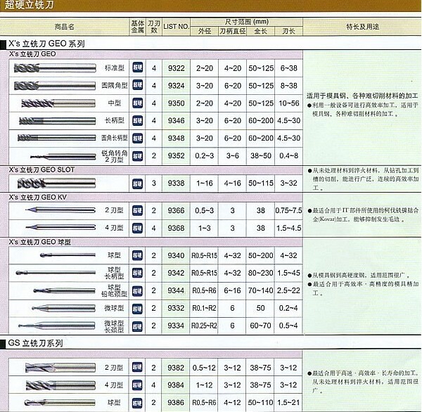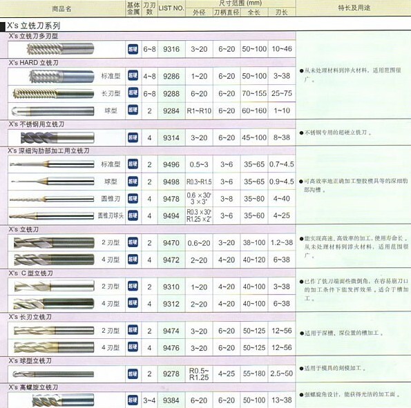 | 超鈷鋼端銑刀系列 | |||