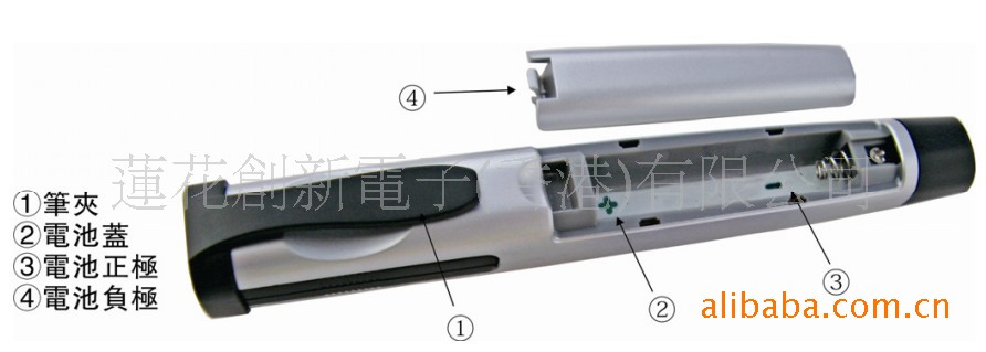 打开演示器的电池仓盖,按电池的正负极指示符号,正确安裝电池后并扣好电池盖。