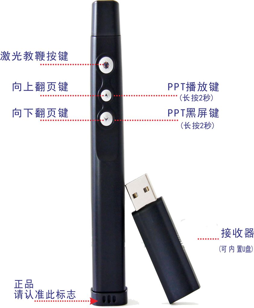 - 采用一体式设计,接收器内置于演示器中,在使用用时可更好的收捡,再也不担心接收器找不到。