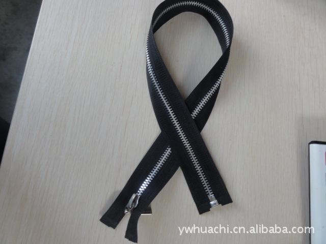 此款是5#尼龙银丝开尾拉链,与平常尼龙拉链不同之处在于布上缝线是银白色的。
