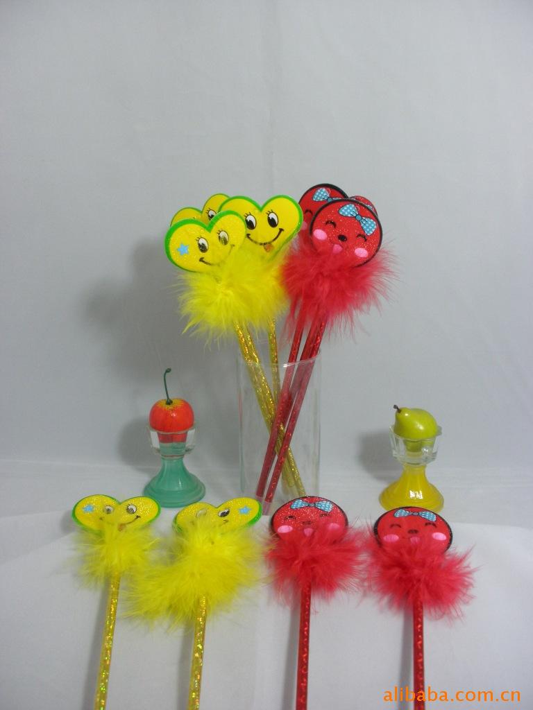 3:羽毛是经过多道工序生产而成。迎风飘扬的多色羽毛与笔杆颜色溶为一体,再搭配各种卡通造型,漂亮的花朵,爱心饰品,让整支笔充满活力。