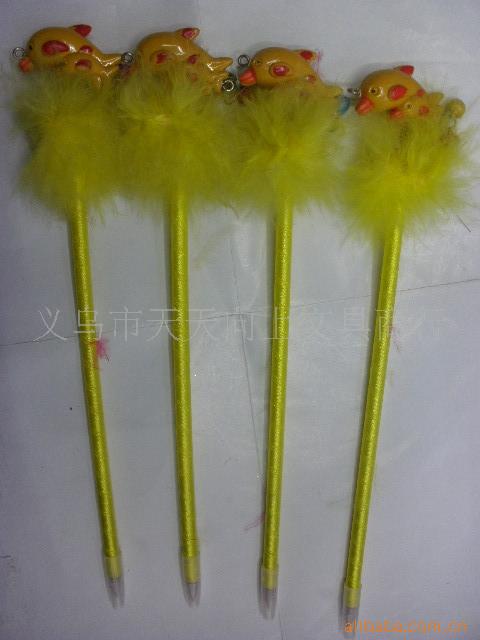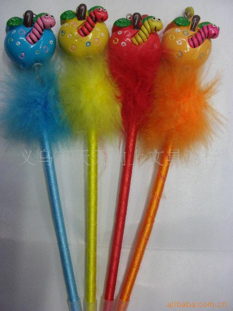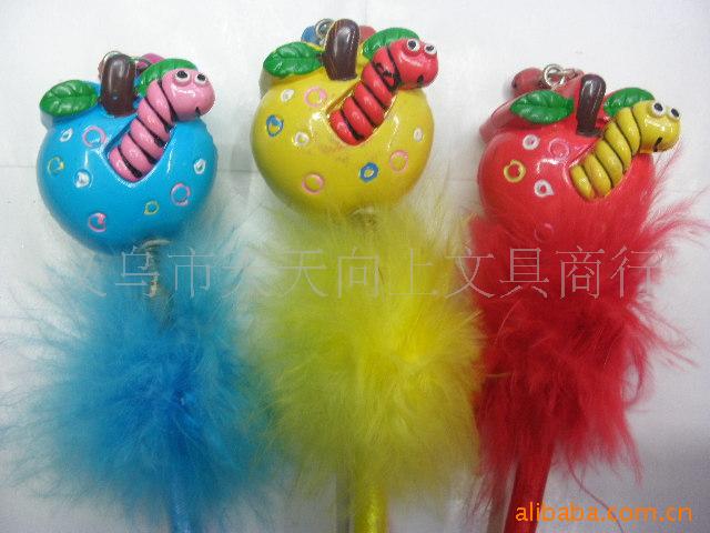 3:羽毛是经过多道工序生产而成。迎风飘扬的多色羽毛与笔杆颜色溶为一体,再搭配各种卡通造型,漂亮的花朵,爱心饰品,让整支笔充满活力。