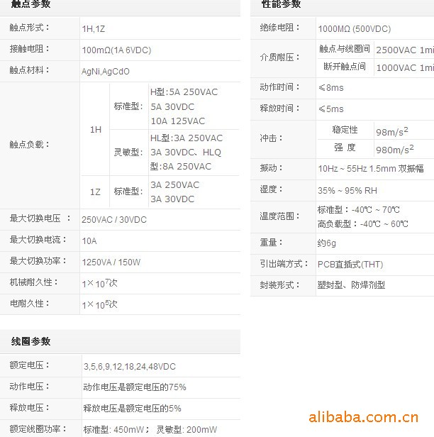 ·触点线圈间介质耐压4kV