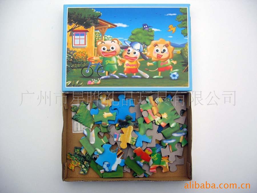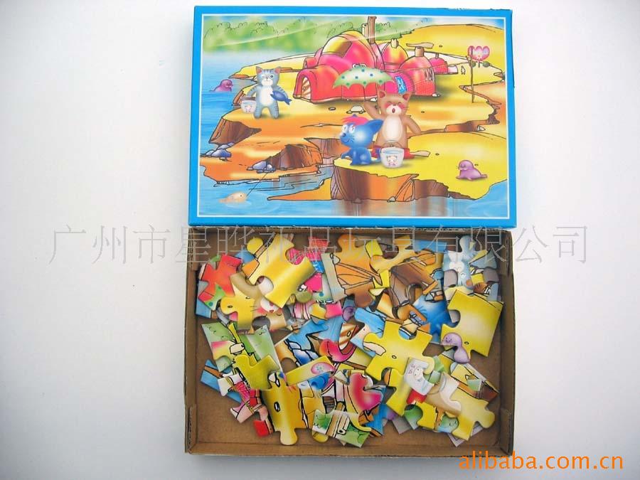 7)磁性拼图(纸板拼图):采用下面软胶磁铁(或纸板 灰板纸)+上面铜版纸四色印刷裱光膜,中间冲切设计需要的拼图小片来制作而。