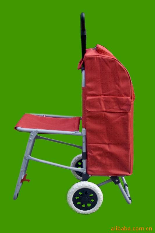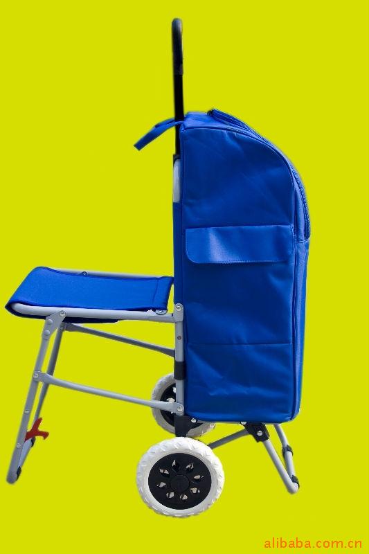 本新产品通过精心设计,将购物车和椅子巧妙的结合在一起,是外出购物和休闲的产品,并且使用了花瑶布面料和保温材料相结合,使所购的新鲜食物能保温2个小时左右,完全密封设计,解决了超市所购生鲜食物在途中的保温保鲜问题。另外,该产品使用了无缝钢管附设了小座椅及固定搭扣,使外出休闲旅游或汽车、火车出差路上没有座位的问题得以解决。同时,去掉保温袋后又是一个小拖车,可以拉一些纸箱、煤气瓶等重物,是居家生活的好帮手。