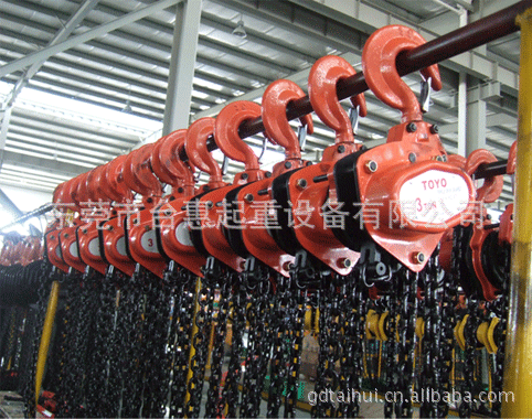 手拉葫芦是一种比较常用的起重工具之一,又称为起重葫芦、吊葫芦等。手拉葫芦操作简便,携带方便深受用户喜爱,适用于工厂、矿山、电力、建筑工地生产施工、农业生产以及码头、船坞、仓库等用作安装机器,起吊货物和装卸车辆,尤其是对于露天及无电源作业,更有其重要之功用,手拉葫芦是一种使用简易、携带方便的手动起重机械。我司现经营有TOYO、象牌、金象、粤龙、VJ、诺亚等知名品牌;