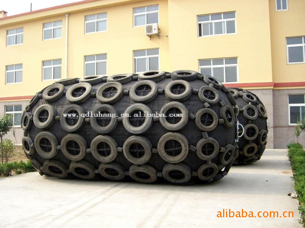 充气式橡胶护舷:广泛应用于大型船舶、海洋平台、海港码头。它利用压缩空气作为缓冲介质,吸收船舶的撞击能量,因此与一般的压缩型橡胶护舷比较具有吸能大、产生的反作用力小、与船舶的接触面积大、作用于船舶的单位面压小、当倾斜压缩时性能不降低,安装简便等优点。可适应船舶各个方向的停靠。
