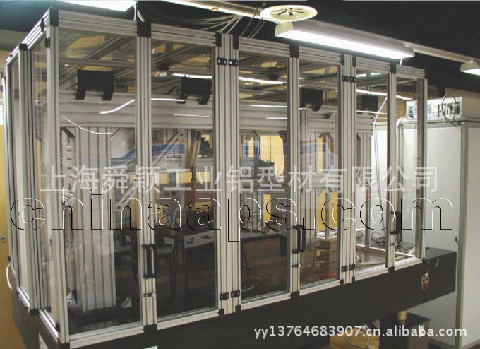 工业铝型材及配件可以加工组装成产品:生产流水线,流水线操作工作台、操作台、办公隔断、屏风、工业围 栏、各种框架、展示架、货架、机械防尘 密封护罩等。