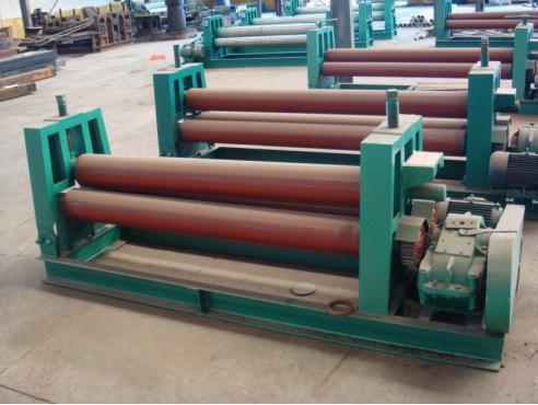 该卷板机为三辊对称式,卷板机的上辊在两下辊中央对称位置做升降运动,通过手动丝杠调节,两个下辊做旋转运动,通过减速机的输出齿轮与下辊齿轮啮合,为板材行走提供动力。卷板机规格平整的塑性金属板才通过卷板机的三根工作辊之间,借助上辊的下压及下辊的旋转运动,使金属板经过多点次的连续弯曲,产生永久性的塑性变形,将板才卷制成所需的圆锥、圆筒或它们的一部分。本卷板机三工作辊为空心厚壁管,倒顺开关操作,电动卷板,带副压杠。小齿轮高频淬火,轴套采用无油轴承.结构简单,使用方便。该三辊卷板机质量好,售后服务有保障。