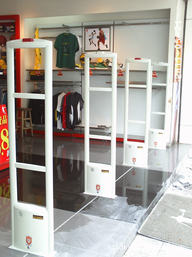 Description: aluminum pole and black WuGang chassis, in two organic glass, compact, generous, adopt rf principle, internal with advanced automatic gain control and optimal real strong, fast response time, high sensitivity, strong anti-jamming capability, installed in the cashier or export, mainly for the acousto-optic alarm.