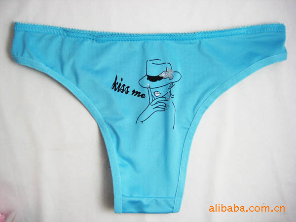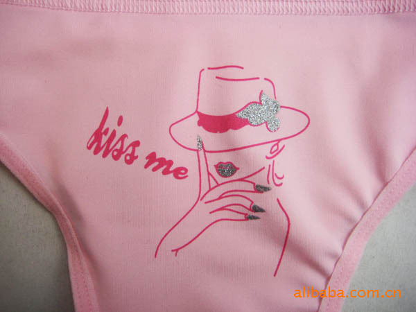 屁股后印花比基尼内裤 型号:86239# 码子 :M L XL 颜色:红色,黑色,白色,粉色,杏色,蓝色,果绿色 包装:2条/opp,12条/opp (混色混码) 60条/捆 材料:牛奶丝