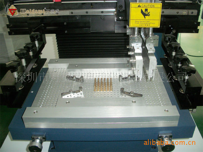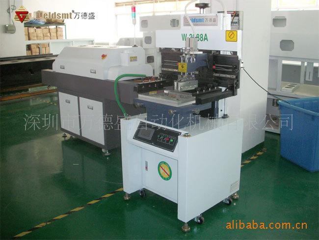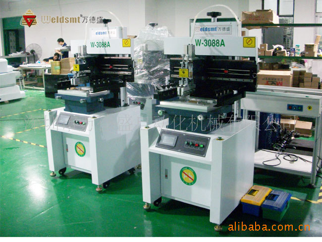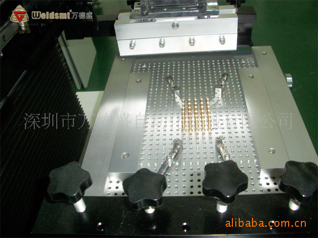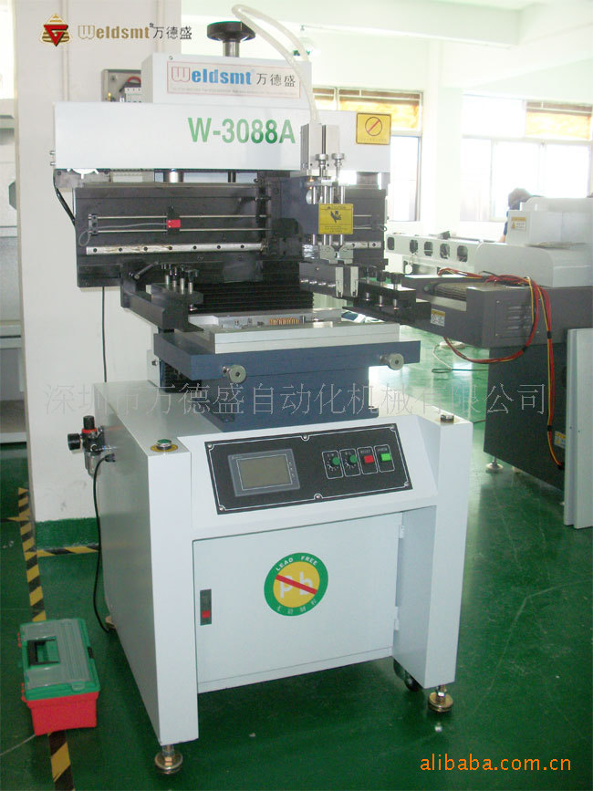 一、产品介绍 1. 采用精密导轨和台湾ZD变频马达来驱动刮刀座,确保印刷精度。 2. 印刷刮刀可向上旋转45度固定,便于印刷网板及刮刀的清洗及更换。 3. 刮刀座可前后调节,以选择合适的印刷位置。 4. 组合式印刷台板具有固定沟槽及PIN,安装调节方便,适用于单,双面板的印刷。 5. 校版方式采用钢网移动,并结合印刷(PCB)的X、Y、Z。校正微调方便快捷。 6. 采用三菱系列PLC及人机界面控制,简单、方便更适于人机对话。台达变频器控制印刷速度. 7. 可设定单向及双向,多种印刷方式可采取直角定位及定位针两种定位选择。 8. 具有自动计数功能,方便生产产量的统计。 9. 刮刀角度可调,钢刮刀,橡胶刮刀均适合。 10. 人机界面具有屏保功能,保护人机界面使用寿命。 11. 采用独特的程式设计,印刷刮刀座调节方便。 12. 印刷机速度人机界面显示,可任意数字化调节控制。 二、半自动印刷机产品参数 SPECIFICATIONS