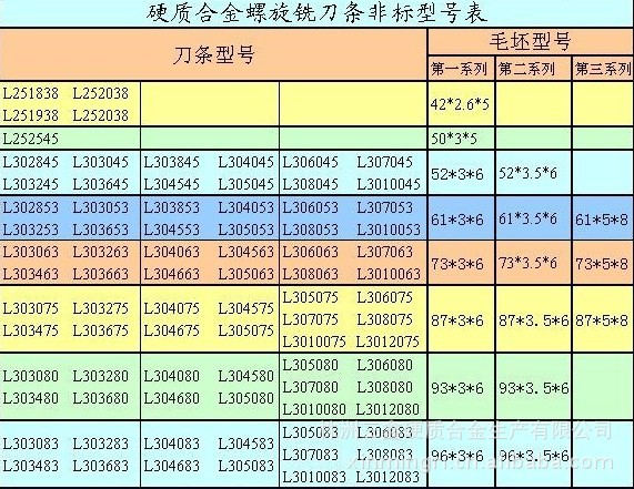 硬质合金螺旋铣刀条主要牌号K30、K20、K10、YW1、YW2、YS25 、YS2T、YH8、YH12等,型号从刃径D7 ~D200mm、螺旋角从5°~40°、轴向长从15~150mm等规格产品均能生产,内部质量稳定好,形状(贴合率)极好,交货快,标准型号产品2天内发货,非标产品4~15天交货。非标硬质合金螺旋铣刀条产品可根据客户要求生产,并承接来料加工,欢迎光顾。