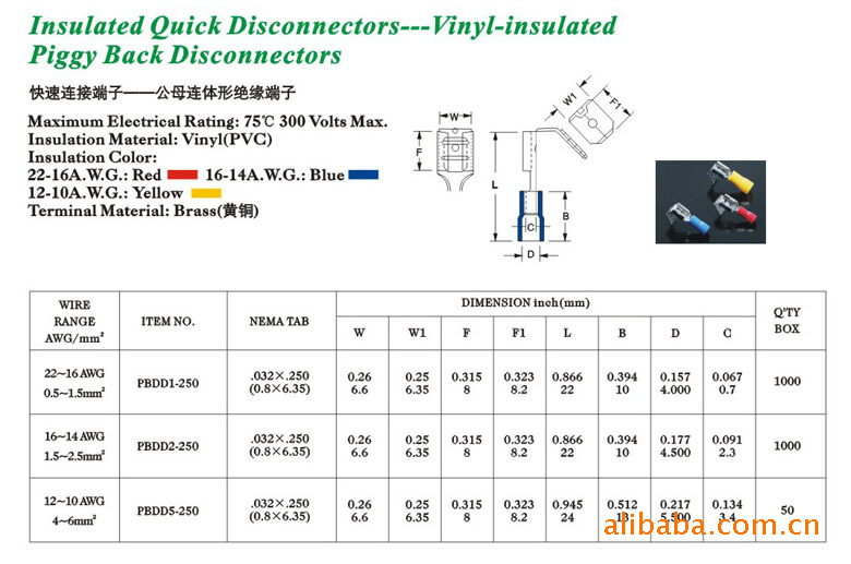 公司采用进口材料开发模具,引进高速冲床,大大提高生产率和产品精度。采用可提高电气连接的可靠性、安全性、美观性,适应现代工业的技术和配套要求。公司所生产的端子是选用99.9%高纯度工业紫铜制成,表面镀亚光锡,尾部缝处焊银,内孔制有螺纹线,进口的绝缘套管,按国际通用色别区分等特点。产品远销欧洲、美国、台湾等20多个国家和地区,被我国机床、纺机、电机、铁路、船舶、电控、仪表、计算机和家电等行业广泛采用。