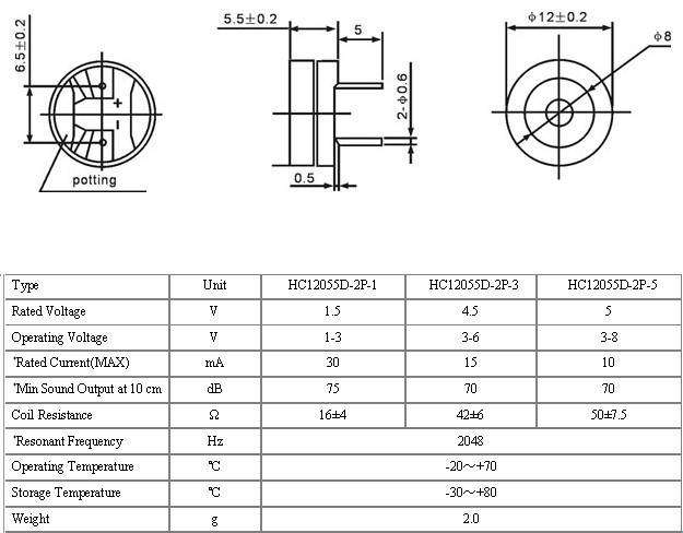 ¢12mm×5.5无源42Ω中孔¢4.8mm蜂鸣器