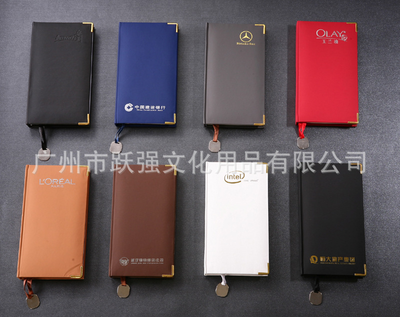 内页可分别选择, 80克、100克、120克书写纸、道林纸和环保纸,可订制单色专页,年历版,采用插页方式插入四色彩页,可选择挂牌、包装等组合成个性记事本,增强广告功效。