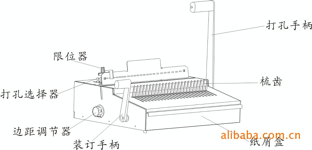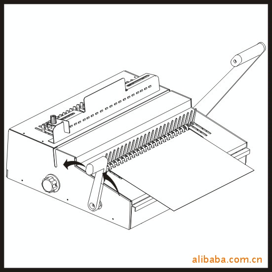 b、将已打好孔的纸张正确地装于装订环上,向上回推装订手柄,完成装订过程。