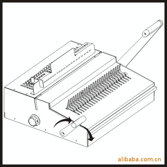 a、正确地把装订环装于梳齿上,向下按下装订手柄使装订环张开。