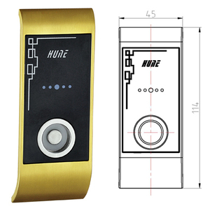 u 金属面壳中间采用触摸屏(如带密码的就直接触摸面板就能感应密码键),配合灯光效果,具有很强时代科技感,两侧暗带拉手设计的电子柜锁。