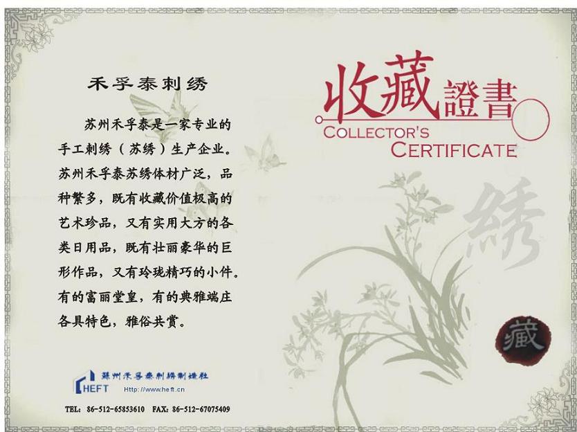 应中阿国际展览有限公司的委托,我司根据提供的图案,由我司八名刺绣高级工艺师,历时八个月成功制作完成,并配以收藏证收,是难得的收藏品及欣赏艺术品!