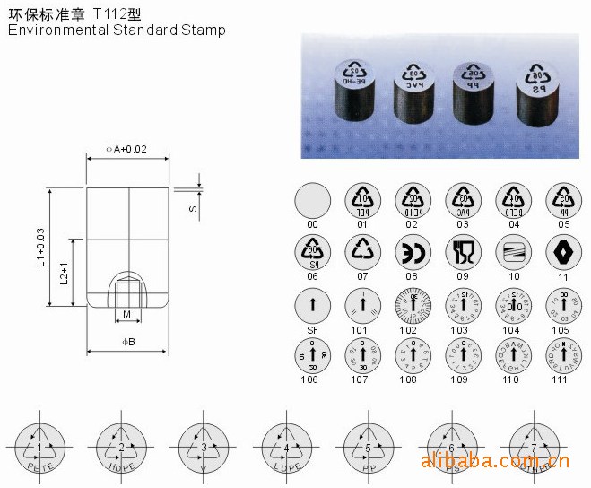 [一] 模具日期码:年份章,月份章,年月合并章,环保标识章,CE标识章,塑胶原料标识章,生产班次章;