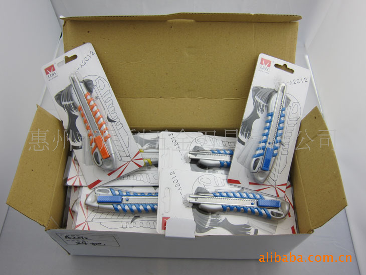 商品名称:美工刀 塑料柄美工刀 利达行A2005吸塑美工刀 产地:广东深圳 材质:吸塑 长度:16cm 包装:36把/盒 产品特点: 1.金属护鞘,塑料刀身,坚固耐用 2.刀片可以分段使用,延长寿命 3.人体工程学设计,握持舒适 4.前端金属鞘可以充分保护刀片,使用安全 注意事项: 1. 不宜剪切硬物及强行剪切 2. 接触酸碱盐类物质后应及时清洗擦干 3. 剪柄勿靠近高温 4. 儿童应在大人监护下使用