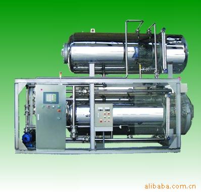 一般罐头食品厂对罐头作常压水煮加热杀菌处理时都采用本形式的卧式杀菌锅,本设备通过引入压缩空气可实现反压杀菌。如冷却需在锅内进行,须用水泵打入锅顶部的喷水管(或采用水循环系统)。