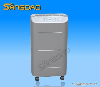 本产品属冷冻式除湿机,整机有压缩机、热交换器、风扇、机壳及控制器组成,其工作原理是:由风扇将潮湿空气抽入机内,经过制冷系统(压缩机,蒸发器,冷凝器)相互作用下凝结成霜,系统自动升温化霜成水流入盛水箱,产生出干燥空气排出,如此循环使室内湿度降低,潮湿空间逐步达到干爽的效果。