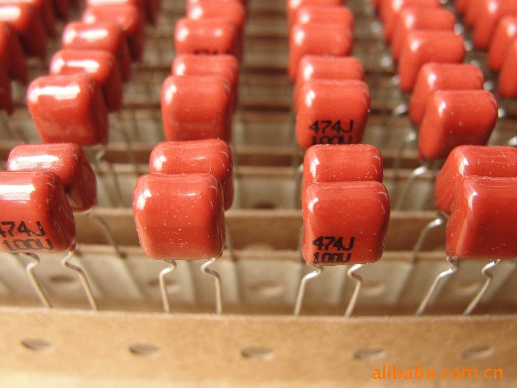 超小型金属化电容 474J 100V P=5mm 棕红色,排带式 1000PCS/盒
