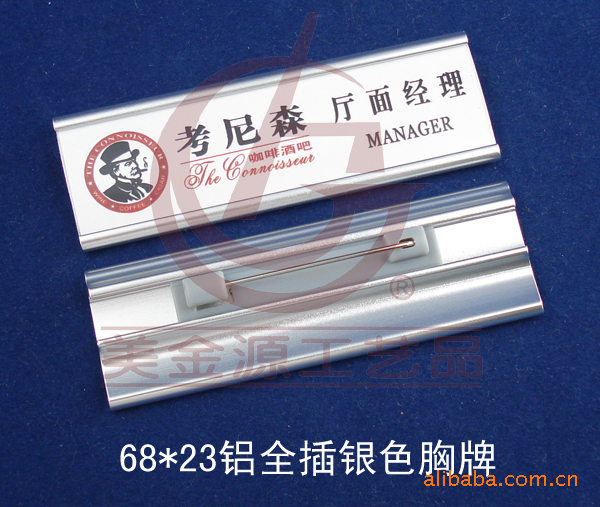 直销五星高档金属铝质全插纸胸牌 铭牌 员工牌 胸牌 工号牌环保卡