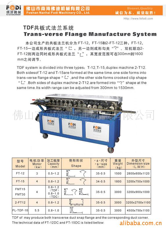 我公司生产的共板法兰机设计合理,结构紧凑,体积小,重量轻,非常适合于工程搬迁,是一款高效率的风管法兰成型机械。该机所有轧辘均采用国标的GCr15,经真空淬火处理,硬度达HRC56-60。它与辘骨机、剪板机、压筋机等组合,可满足中小型风管工程的安装制作。公司根据市场的反馈需要,又在原机的基础上增加了剪辘,用户可直接将板料导入勾夹剪辘,即可成型勾夹,无需预先剪成勾夹成型尺寸,省时又省力。我公司配有专业的售后服务人员,可即时为您提供良好的维修及培训服务。本产品免费保修十二个月。更多产品信息,请登录我公司网站http//www.fsfodi.com查询。