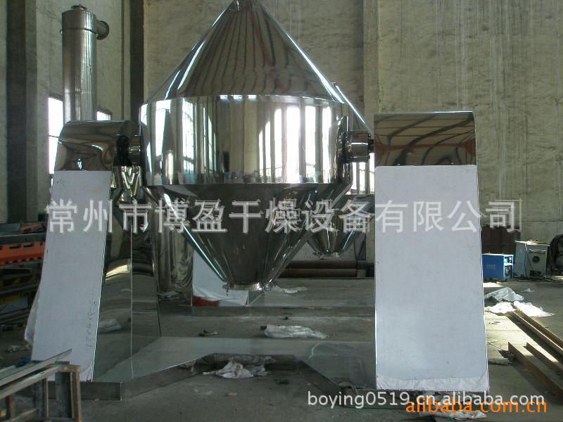 双锥回转真空干燥机是集混合-干燥于一体的新型干燥机。将冷凝器,真空泵与干燥机配套,组成真空干燥装置。(如不需要回收溶剂,冷凝器可不用)本机设计先进,内部结构简单,清扫容易,物料 能够全部排出,操作简便。能降低劳动强度改善工作环境。同时因容器本身回转时物料亦转动但器壁上不积料,故传热系数较高,干燥速率大,不仅节约能源,而且物料 干燥均匀充分,质量好。可广泛应用于制药、化工、食品、染料等行业的干燥。符合药品管理规范“GMP”的要求。