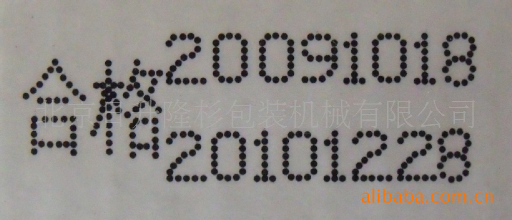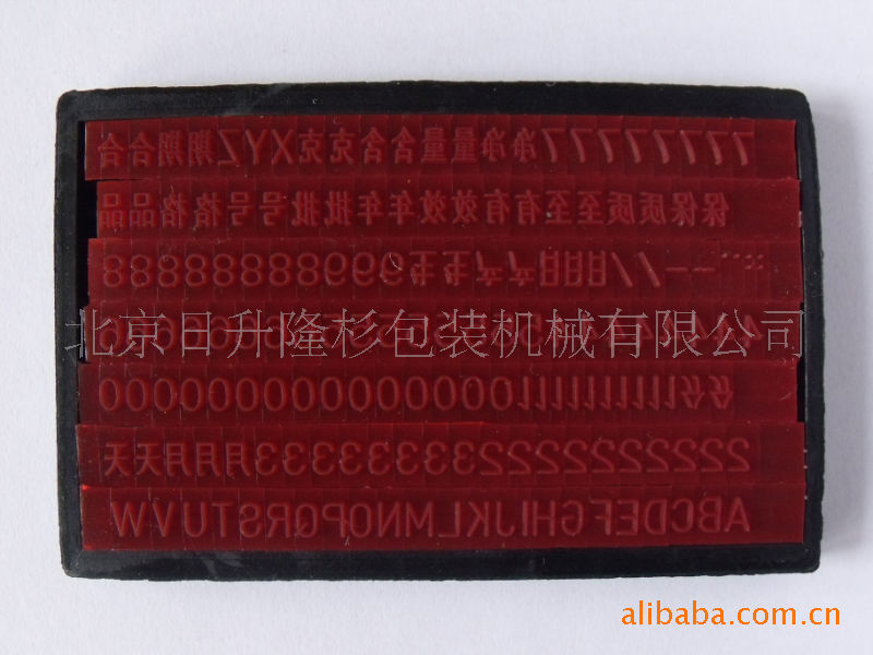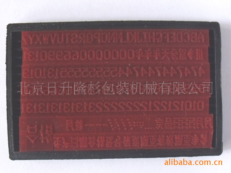 不受物品高度尺寸的限制,字模(见下图)随意排列。可以打1-3排(可调),小字每排字最多可打17位,大字每排最多14位。字模多(年月日 生产日期 批号 有效至 合格品 保质期 天 分 A-Z26个大写字母 0-9数字若干 小数点 冒号 斜杠 横杠),字体大小是2*3毫米和3*5毫米,随机任选一种,也可单独购买一板字模。采用现在最流行的虚线字,使商品更上档次;