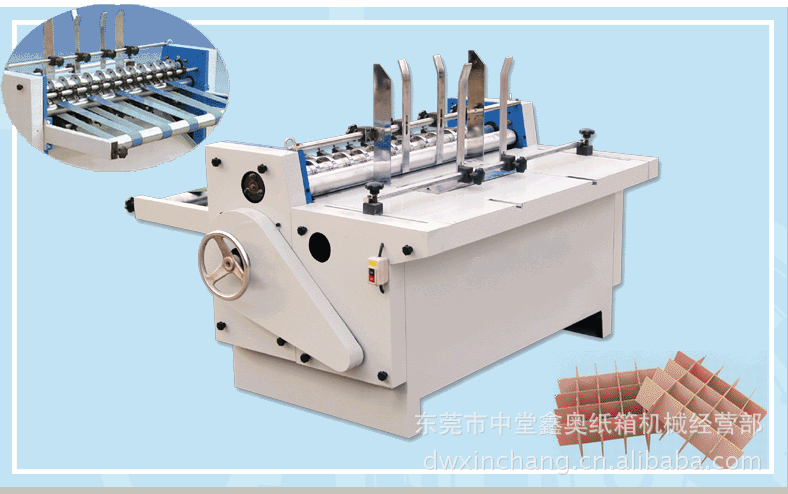 瓦楞纸板自动隔板机,具有造型新颖、美观大方、运转平稳、动作轻快、操作方便等特点,和所有同类设备功效对比,一般能提高4-5倍。具有开槽清晰、无毛边、尺寸准确及耐用之优点。