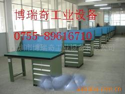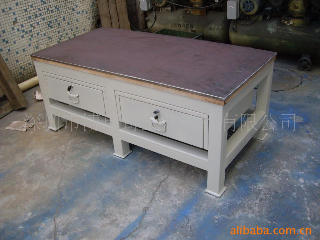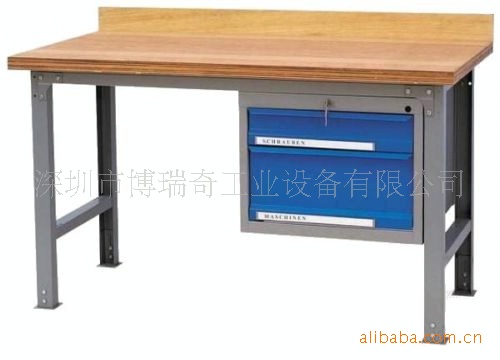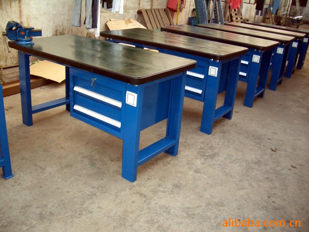 工作台  工作台是为工厂的组装、生产、维修、操作等工作而专门设计。作为各种作业的操作平台,工作台适合钳工、模具、装配、包装、检测、维修、生产办公等各种生产用途。工作台的桌面经特殊处理,具有防腐、抗冲击力强等特性,多种桌面的选择,可配合不同的使用要求。所配置的抽屉、柜门方便使用者存储工具。工作台桌面上可以增加不同的组件,如百页、方孔挂板,电源插座、照明灯具、吊具等。配合零件盒及各种不同的挂钩,工作台还可以存放各种常用的零件、工具等,更加合理地使用空间,充分满足实际生产操作的需求。