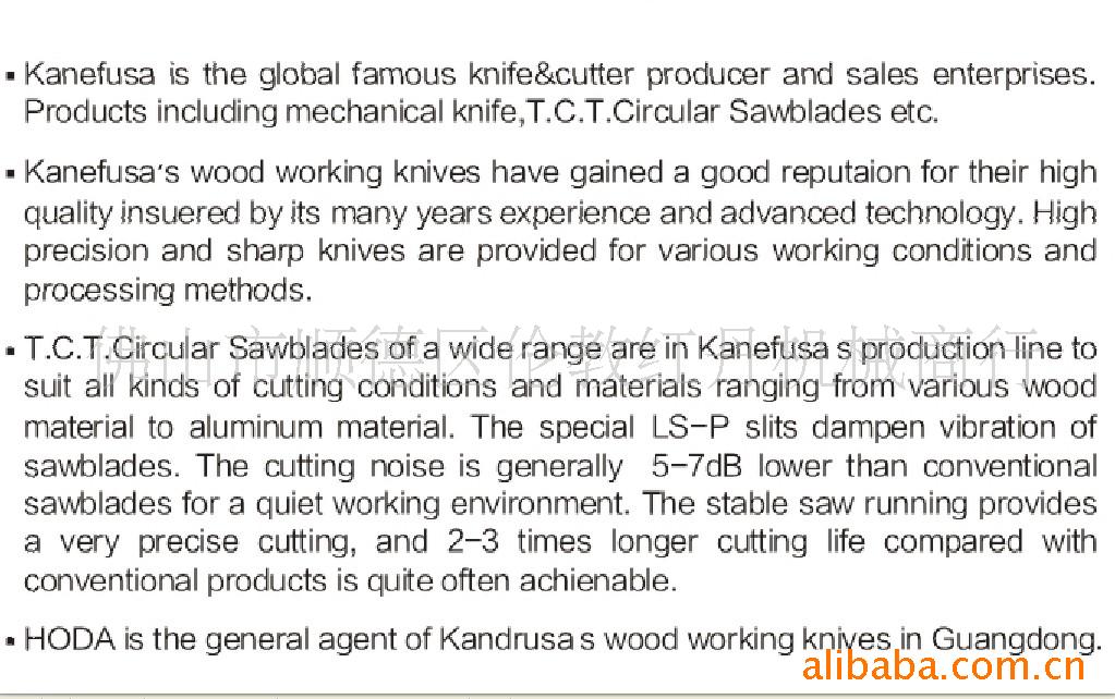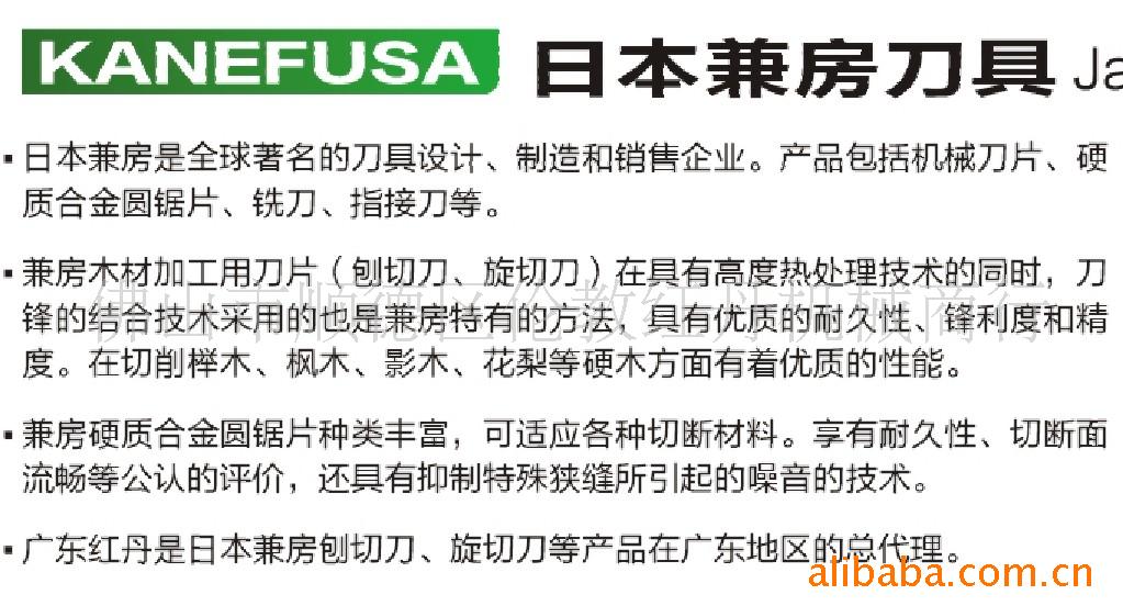 日本兼房株式会社: 刨切刀、旋切刀、合金锯片、金钢石锯片。