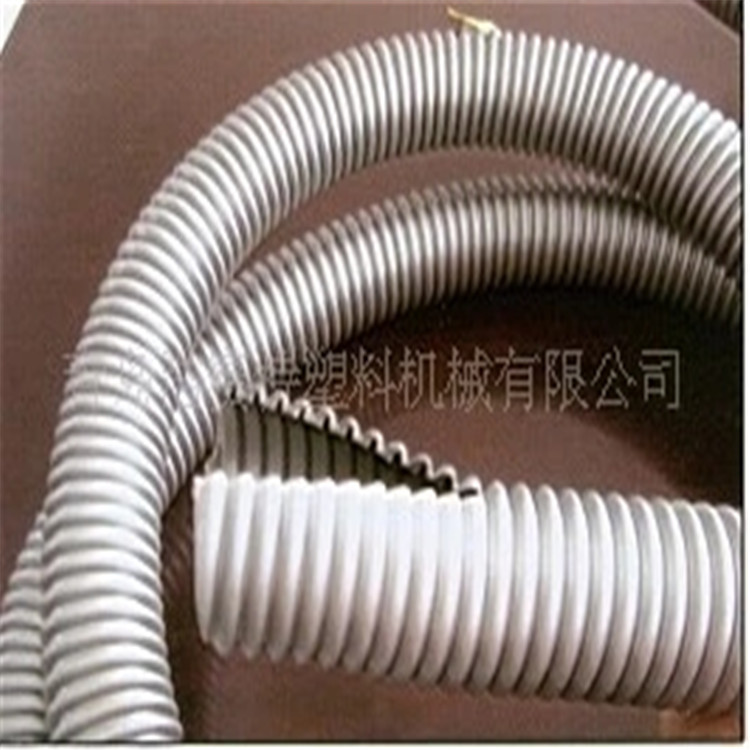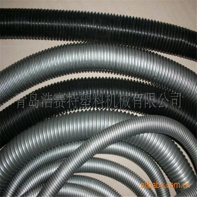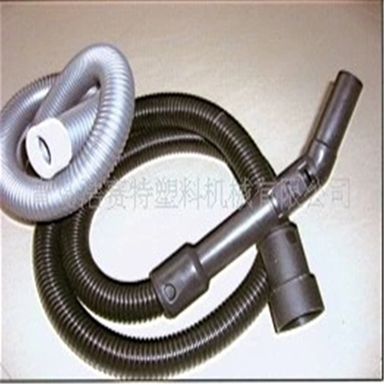 吸尘器管生产设备是以EVA(乙烯+醋酸乙烯脂的共聚物)为主要材料,加入一定的LLDPE(线性低密度聚乙烯)为辅助材料,经挤出机挤出成型一定几何图形的软质塑料条,经缠绕胶粘而成的一种塑料制品,这种制品具有耐挤压、耐腐蚀、耐负压、抗弯曲、流通性好等特点,适用于气体、液体和粉状物的输送。良好的弯曲性能及反弹性。常用于吸尘器、洗衣机等家用电器,作为水、气、风管道的应用。