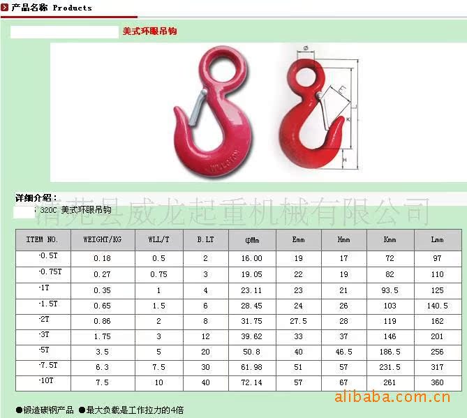 320C 环眼 舌片钩 | 0.5T | 0.5T | 100 |