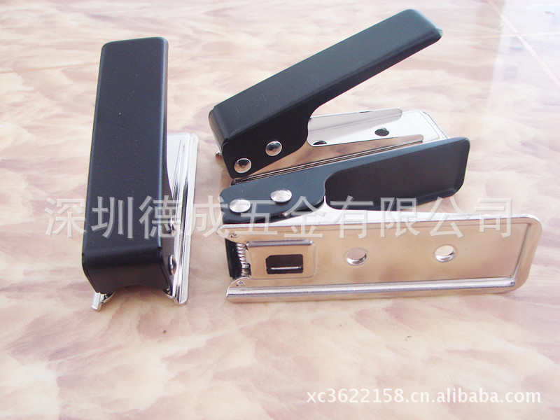 本方案用来加工SIM卡的剪卡器,外观就像一个打孔机,只需要将普通SIM卡放入剪卡插槽,就能轻松剪出大小合适的Micro-SIM卡,放入iPhone/iPad 就能连上移动网络。