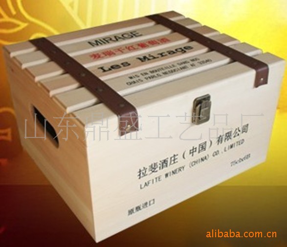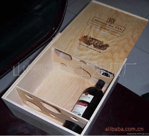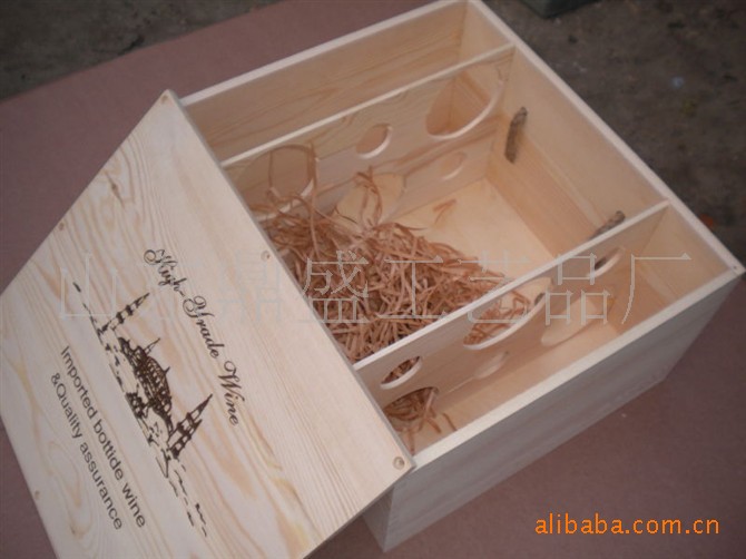 烫印抽拉门六瓶装松木礼盒