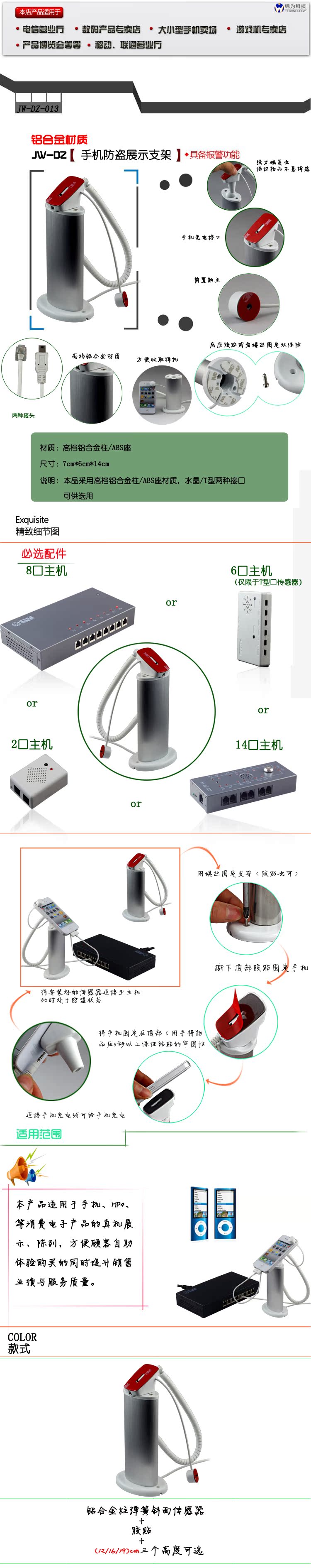 2、配置主机:广泛应用于各种消费类电子产品卖场、产品展览会、博览会的产(样)品展览柜、电子数码商场产品柜、手机专柜等在内的防盗安装,能有效的保护各类数码产品、电子礼品如手机、MP3、MP4、耳机等小型电子陈列品,以及高档工艺礼品、饰品等,以防备产品丢失!