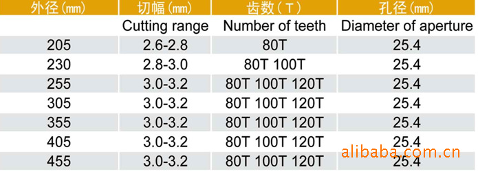 Features: Flat tooth, ATB, flat-triple chip tooth, combinative tooth