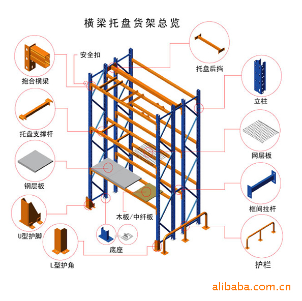 以立柱片+横梁形式的全组装结构,结构简明有效。可根据存储单元集装设备的特性加装如:隔档、钢层板(木层板)、金属丝网层、仓储笼导轨、油桶架等功能性附件。满足不同单元 集装设备形式的货物存储。