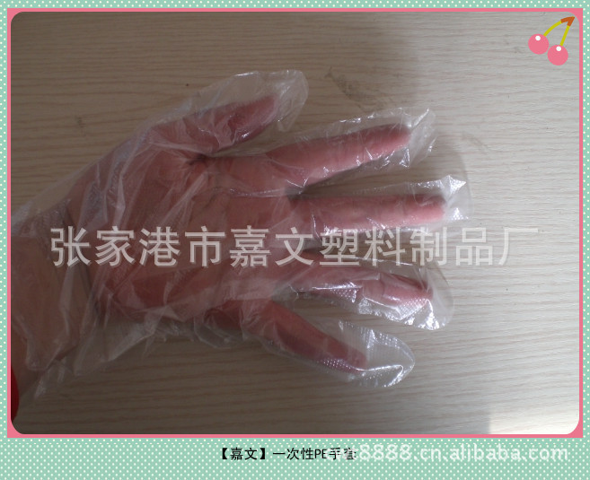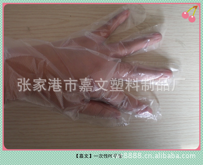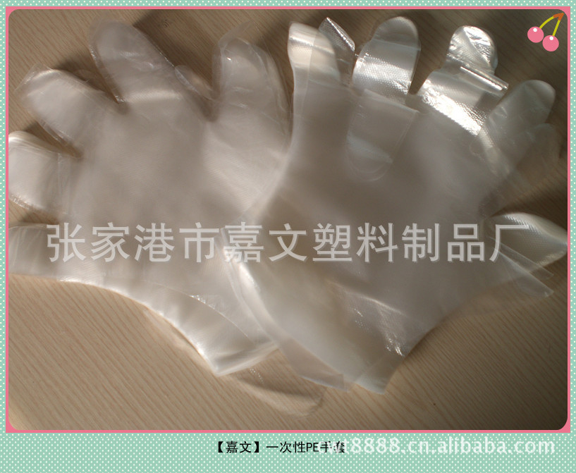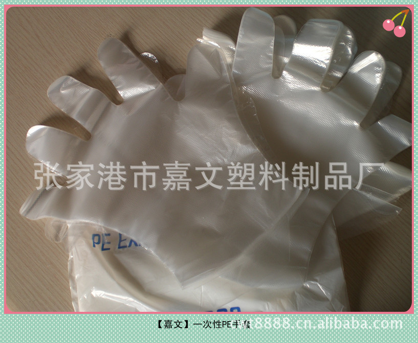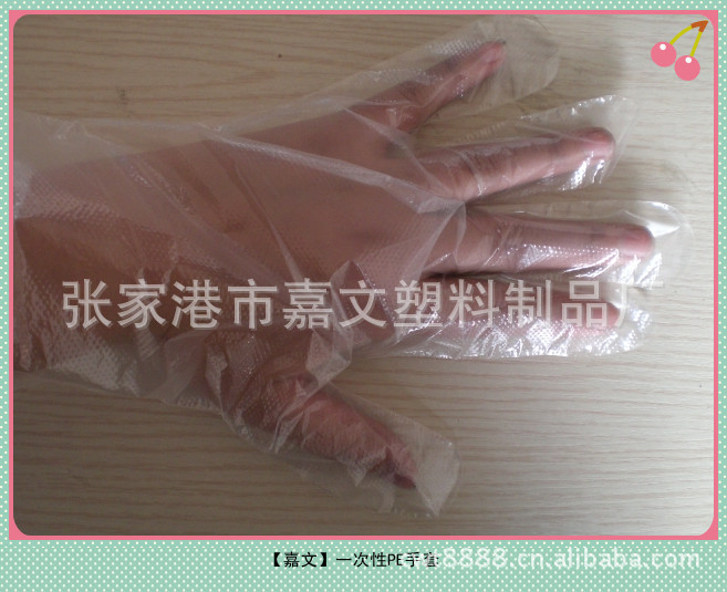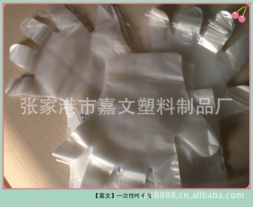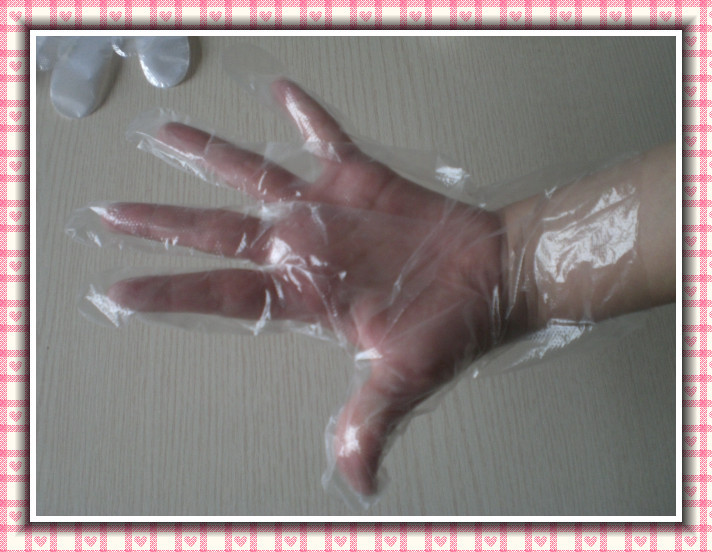 4)我公司生产的一次性PE手套,干净、方便、卫生、无毒无味,适用于家庭清洁,化学检验,机械园艺,食品、卫生及工农业防护;也可用于染发、护理洗涤,用餐时(如吃龙虾、大骨头)佩带可免去洗手之不便等。具有防水防油,防细菌,耐酸碱的功能。